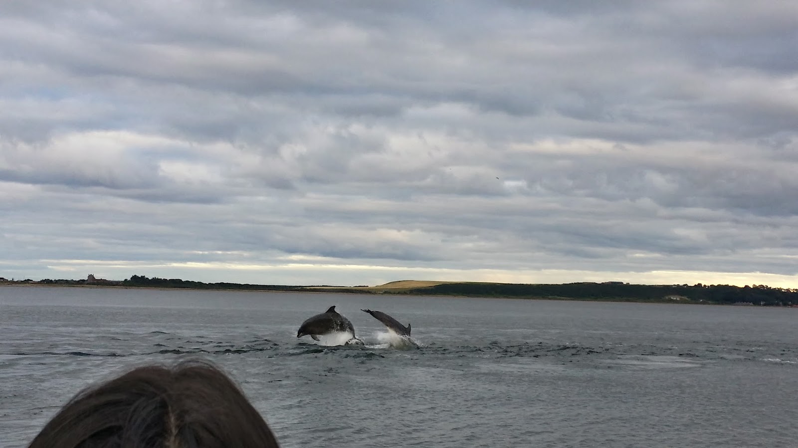 Steve has some fab pictures of these which we'll upload when we get a chance, but poor as this photo is it does show you just how close you can get to them. About 2 hours after low water they come out to feed and when they're done feeding they start larking around. My tip - go for the early morning tides if you can, the evening "performances" are generally packed.